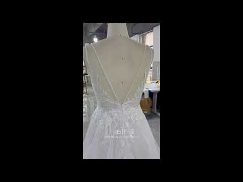 Make your wedding day truly unforgettable with our stunning ball gown featuring delicate beaded spaghetti straps. The dress captivates with an illusion corset sweetheart neckline that perfectly fits the torso. The soft underlay bridal lace, adorned with wild lace appliques, creates an ethereal beauty, while the layered tulle A-line skirt and chapel train complete the elegance of this design. Bask in the luxurious details and unrivaled comfort of this exquisite wedding gown.