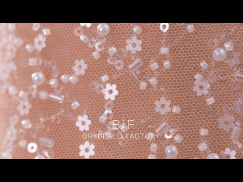 This sophisticated beading lace is made of tiny cream beads, flowers, tubes and sheer sequins on illusion soft tulle, which is perfect for making high-end wedding dresses and evening formal gowns.